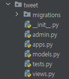 - migrations : Django 앱의 데이터 구조에 대한 변경 사항인 miration 파일이 저장되는 디렉토리