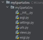 - mySpartaSns : 'Project Root'으로 프로젝트의 모든 파일이 담겨 있는 최상위 디렉토리